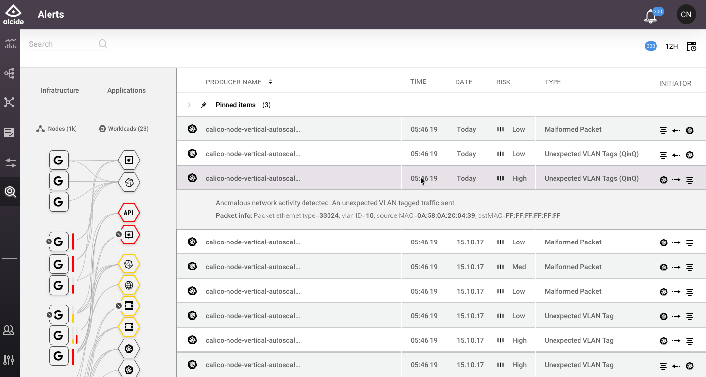 The platform offers in-context information regarding network activities, asset states, security policies, and metadata from of cloud & orchestration platforms
